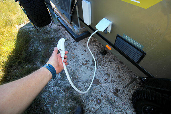 The external shower hose plugs into a tap on the rear offside of the camper and uses a simple trigger on the shower head to operate. It might not be quite as effective as your shower at home, but it works well. All the power and monitoring of water levels is controlled by the excellent REDARC Redvision which, among other nice touches allows you to control items such as lights wirelessly on your phone.
